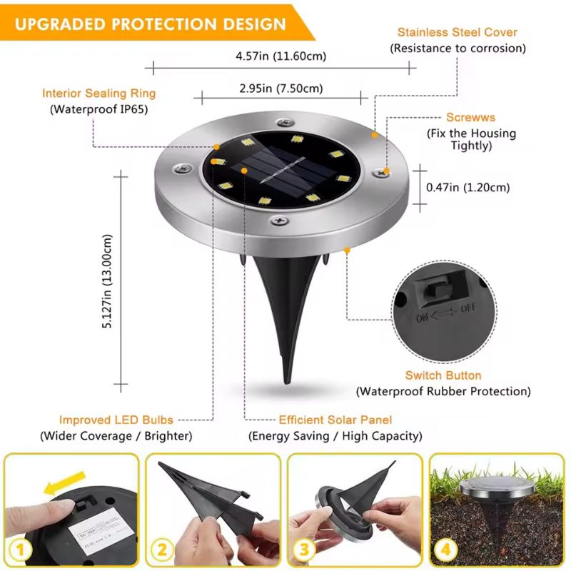 Luces solares para jardín de 8 ledes (2 piezas por $ 1,189.00 MXN )